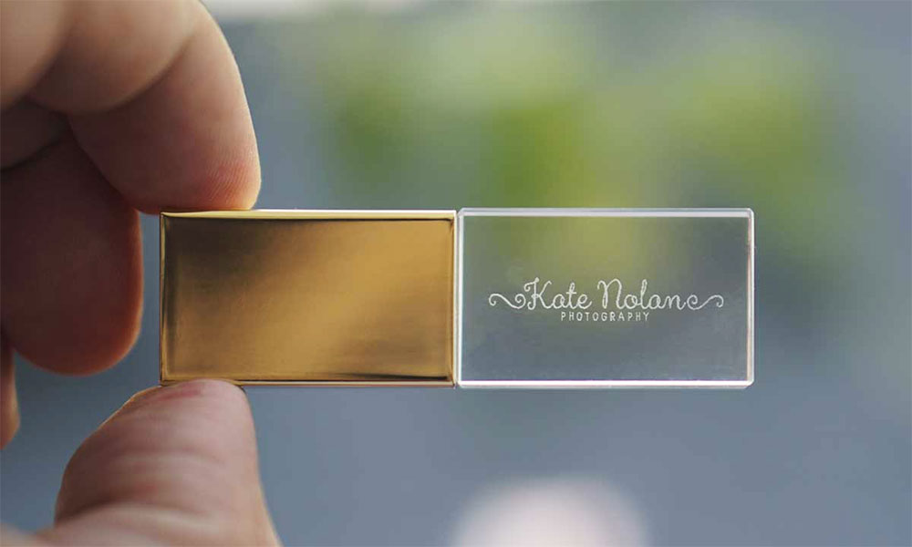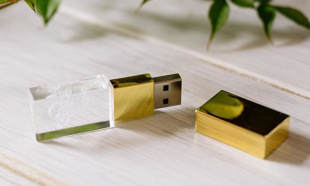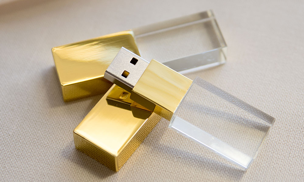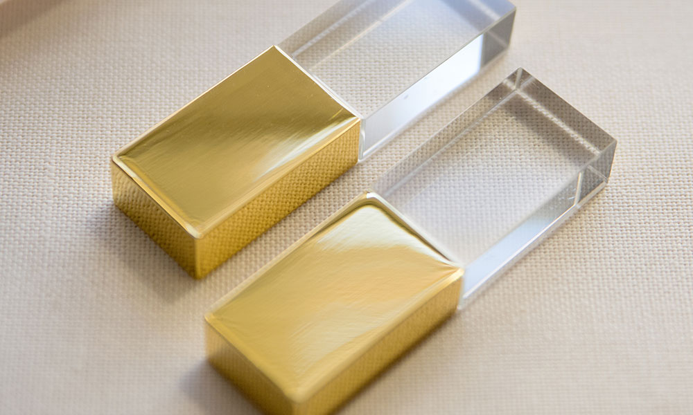 Nem kérdés, hogy ez az egyik leg innovatívabb és legszokatlanabb pendrive ma a piacon. A fényesen csillogó arany színű fém a kristállyal kombinálva valóban csodálatos látványt nyújt. A lézerrel, precízen vágott, és tökéletesre csiszolt akril pendrive test, belülről lézer gravírozható, így felülete teljesen sima marad. A testben helyet kapott egy intenzív fényerejű kék LED lámpa is, ami használat közben különleges megvilágításba helyezi a belülről gravírozott testet. Egy ilyen pendrive biztosan megragadja az ember tekintetét, és tökéletesen mutatna az Ön logójával vagy ügyfelei nevével, esetleg az esküvő dátumával.