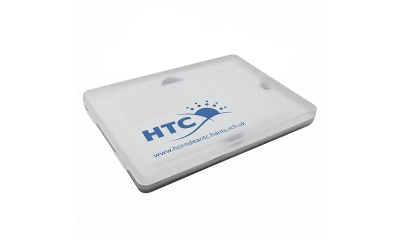Teljes felületén nyomható, bankkártya formájú és méretű pendrive, áttetsző fehér plasztik dobozban. A pendrive és a doboz is emblémázható, többféle em